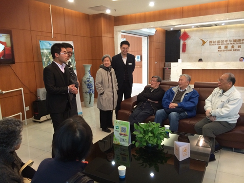 此次活动大家还看望了在此居住的工学院院友施筱仙老师,施老师的辅助讲解和带领参观,使大家对养护中心有了更直观的了解。用餐结束后,大家穿过多功能大街,到半自理、非自理区域参观。对于这里的设施、医护人员素质等问题,大家表示出浓厚的兴趣,纷纷拍照并向讲解人员咨询。对于大家最关心的医疗和日常保健问题,中心职员作了详细的介绍,如:中心会定期为宾客免费体检和健康评估、制定医疗、护理方案,对慢性病、常见病、一般疾病给予诊疗;对医疗站不具备治疗条件的疾病,则能及时送至燕达国际医院治疗。同时,中心也提供完善的饮食、穿衣、洗浴等生活照料,对老年人心理交流也极为重视。