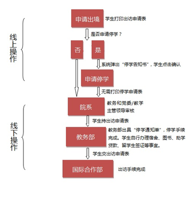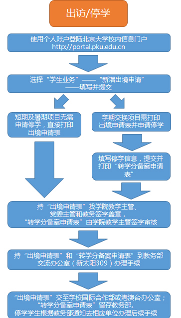 校本部本科生参加出境交流项目(含港澳台)需办理出访申报手续, 出境时间为一学期或一学年的,出行前还需办理停学手续,返校后需办理停复手续。根据长期运行实践和学生的反馈意见,本着科学管理和精简手续的原则,经认真研究,我部于2014年12月出台了《关于调整校本部本科生停复学手续流程的通知》。经过一年运行,结合我校转学分政策的变化,我部决定对停学流程进一步进行调整,具体流程变化如下: